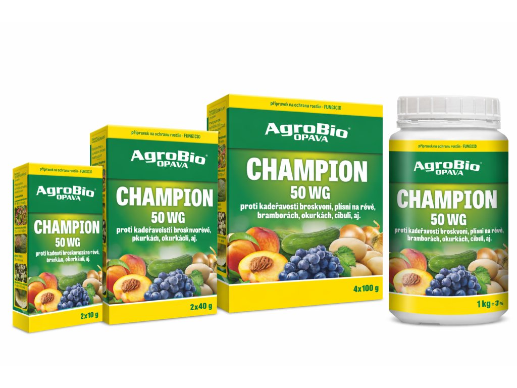 Champion 50 WG je kontaktný fungicíd a baktericíd s veľmi širokým spektrom účinnosti. Jeho sila spočíva vo vysokom obsahu medi, ktorá na rastline vytvára nepriepustný ochranný štít: