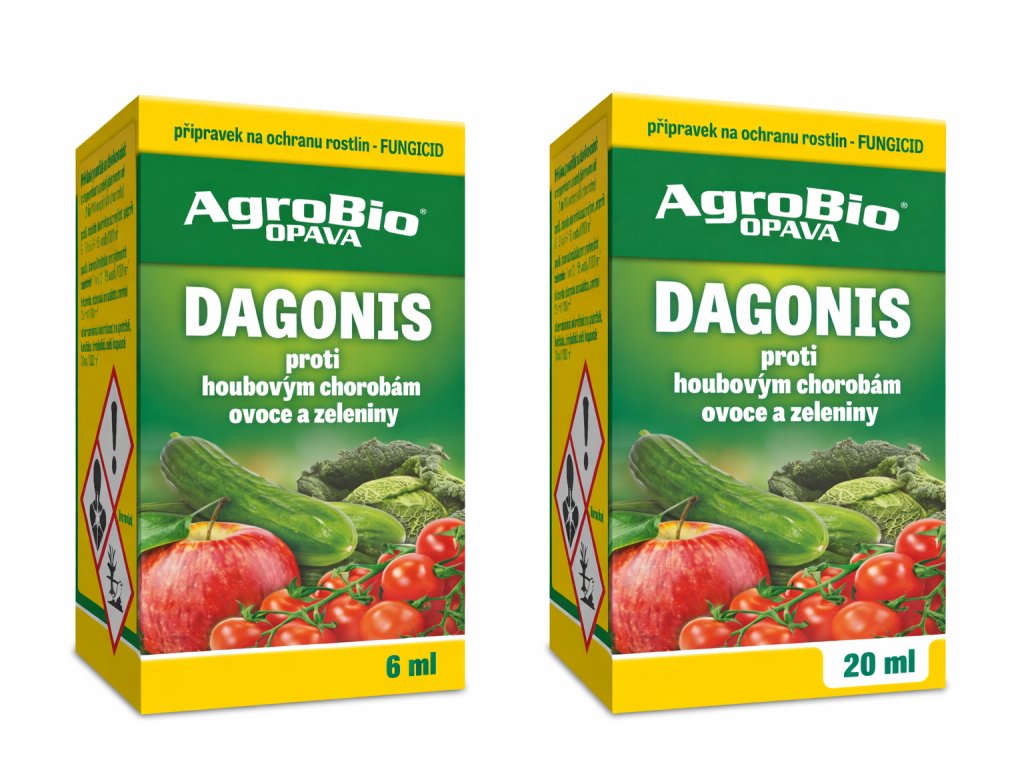 Dagonis je fungicídny postrek (SC) s kombináciou fluxapyroxadu a difenokonazolu na ochranu ovocia a zeleniny proti múčnatke, chrastavitosti a škvrnitostiam.