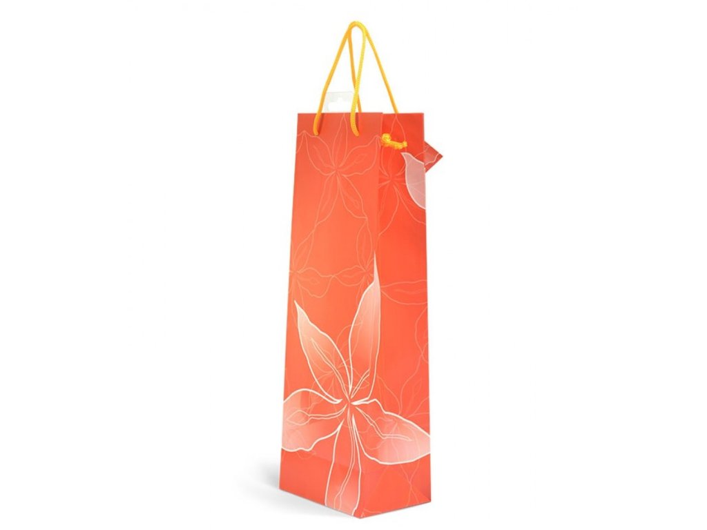 Darčeková taška na 1 fľašu s motívom ľalie v oranžovej farbe. Vybavená pevným úchytom pre ľahké prenášanie a menovkou na vpísanie mena. Vyrobená z laminátu.