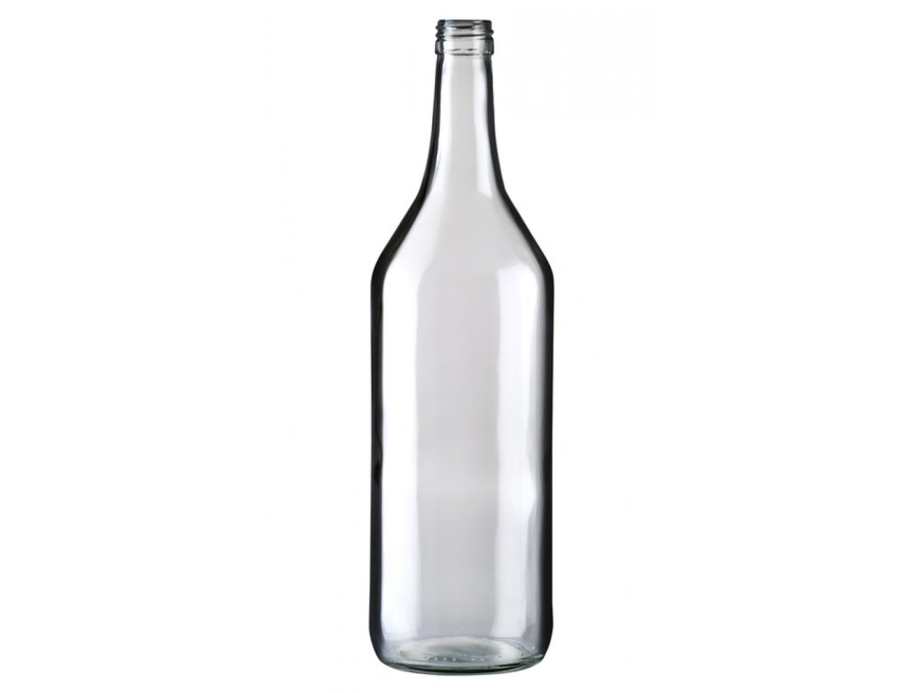 Sklenená fľaša 1 l číra s hrdlom na skrutkovací uzáver. Uzáver nie je súčasťou balenia.