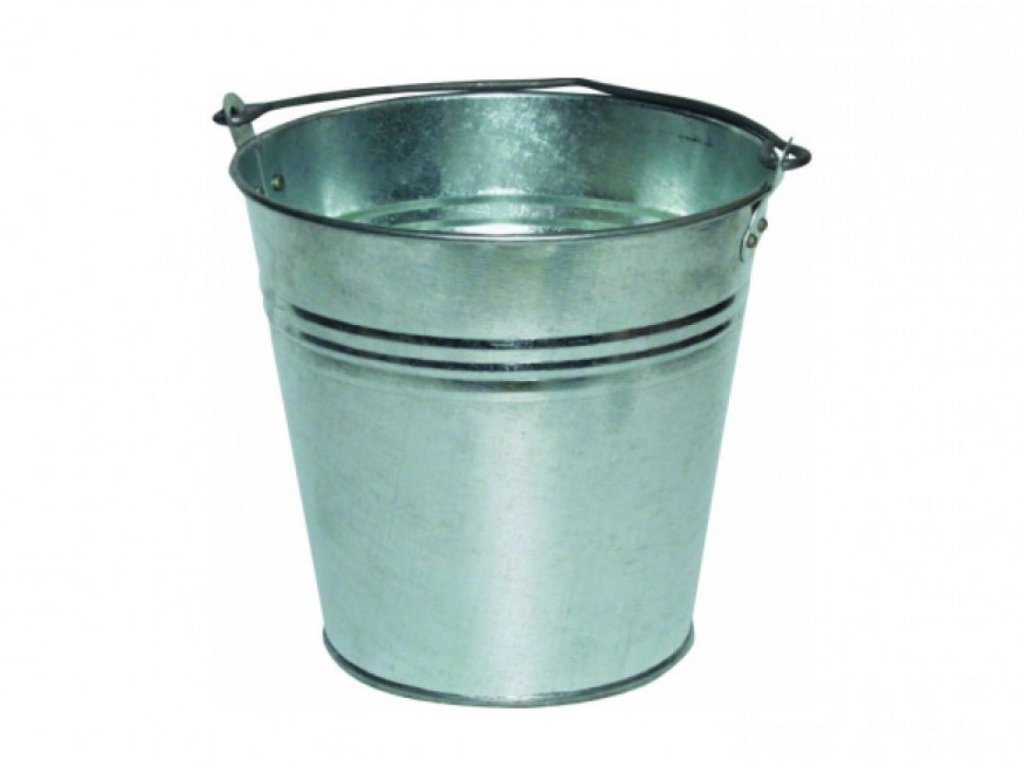 Pozinkované 7 l vedro (vedro) klasického štýlu s rukoväťou, ktoré sa hodia pri každej práci na záhrade, stavbe, v dielni a iných prácach.